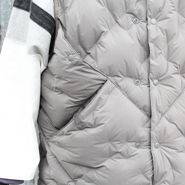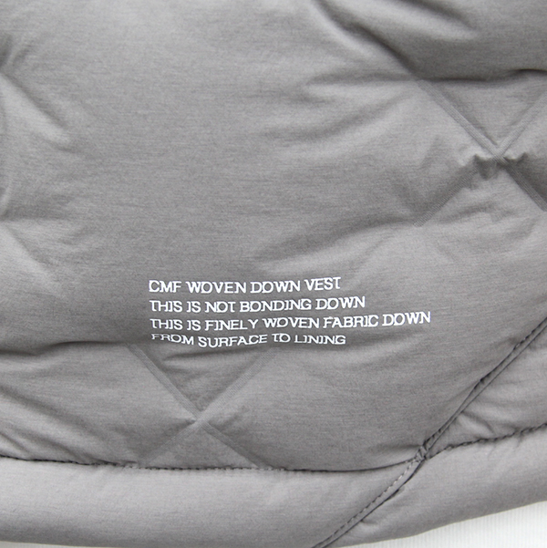 ▼ CMF/ コムフィ CMFより“WOVEN DOWN VEST”のご紹介です。 今期は表と裏をX字に織り合わせ、中にダウン(DOWN 90%、FEATHER10%、70FP)を入れるだけのダウンパック不要の新技術を採用。インナーにもアウターにも使えるベストです。 |