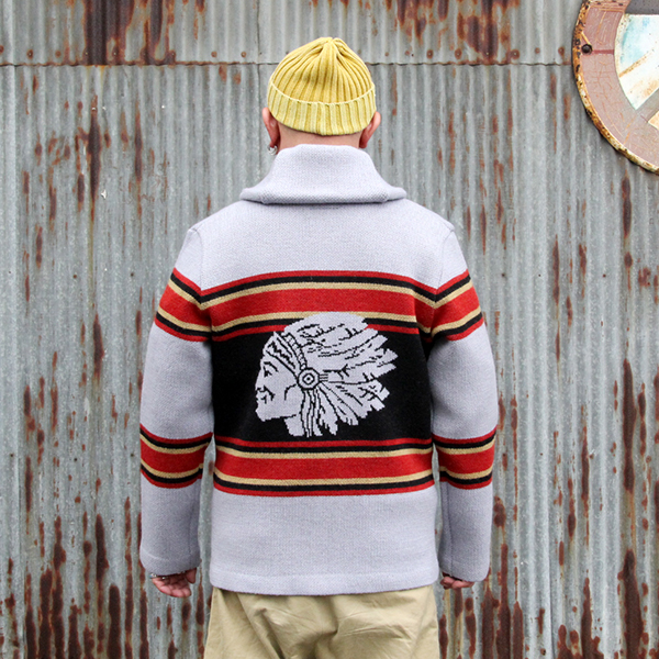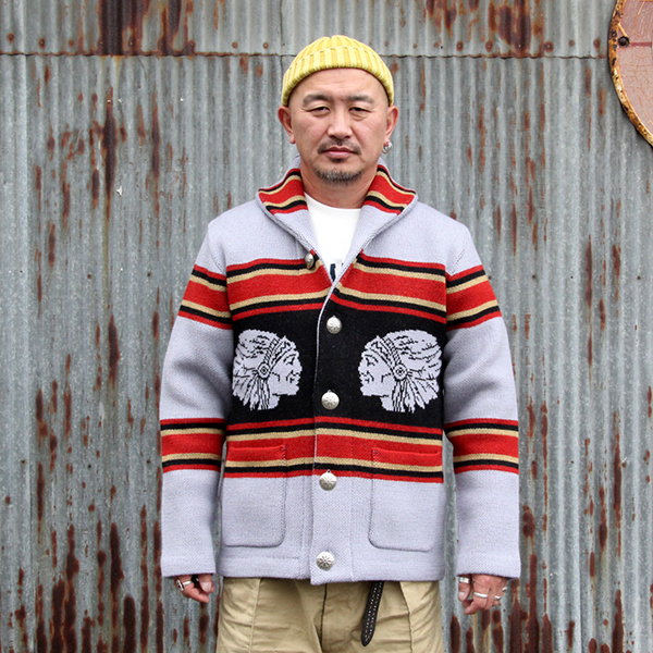 ▼JELADO/ ジェラード JELADOより " Lagna "のご紹介です。 2025年のコレクションテーマは、「THE CREAM OF THE CACHE」。 最上級のコレクションを意味する造語であり、一年を通じてJELADO秘蔵のヴィンテージアイテムを厳選し、再現していきます。 昨年大好評だった「ラグナ」を、今回は大胆にイメージを刷新。 弊社所有のヴィンテージブランケットからサンプリングし、新たに編み立てました。 インディアンヘッドが描かれたブランケットの配色を基調にしながらも、カーディガンとしてのバランスを考慮。ネイティブアメリカンのエッセンスを活かしたデザインに仕上げています。 素材には、4本撚りのメリノウール糸を使用し、5ゲージのヘビーな編み立てを採用。 しっかりとした肉厚な仕上がりで、保温性と存在感を両立しています。 また、フロントだけでなく背面にもインディアンヘッドの大胆なモチーフを配置し、個性的なアクセントを演出。 ネイティブ調のメタルボタンには、Made in USAのBLACK HAWK社製コンチョボタンを採用し、さらなる雰囲気をプラス。 高品質な糸で丁寧に編み上げられており、肌触りも抜群です。 デニムやチノ、ミリタリートラウザーなど、さまざまなスタイルにマッチする万能な一着。 ヴィンテージの魅力を取り入れた、JELADOならではのこだわりの一枚をぜひご堪能ください。